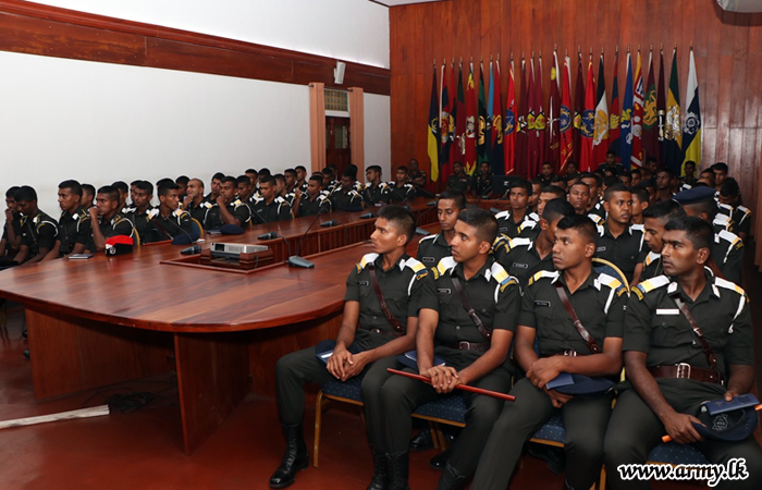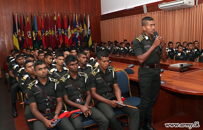 A group of 71 Officer Cadets under training at the Sri Lanka Military Academy (SLMA) as part of their familiarization projects called at the Security Force Headquarters – West (SFHQ-West) at Panagoda on Monday (11).