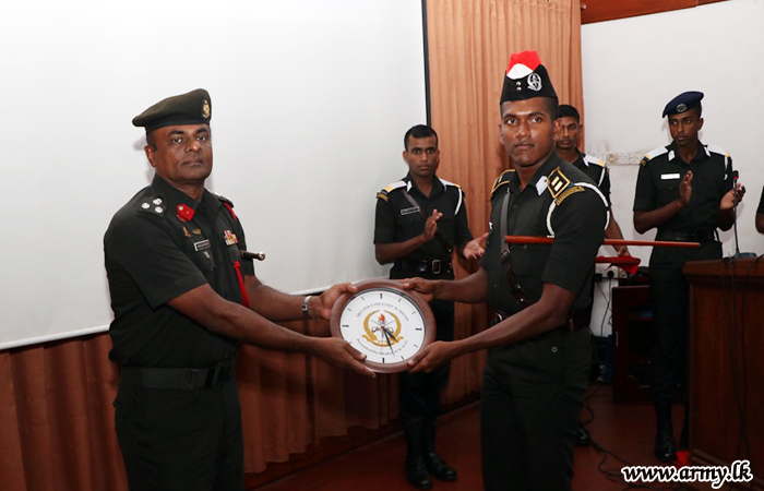 Towards the end of the arrangement, those visiting Officer Cadets presented a memento to the Staff Officer 2 at the SFHQ – West. |