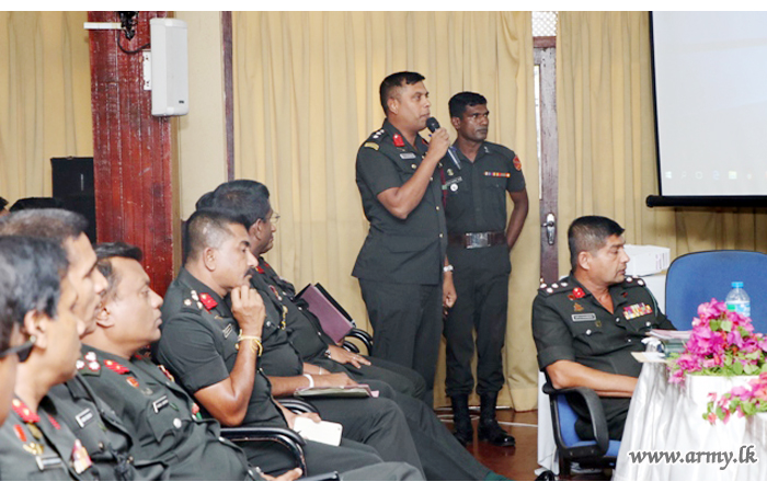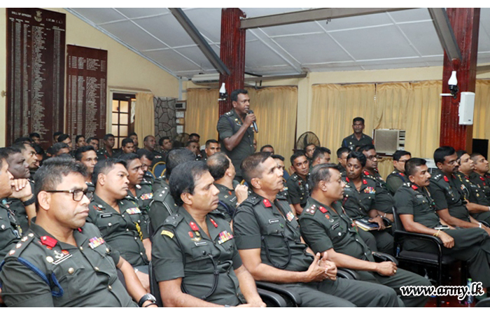 Major General Nisshyanka Ranawana, Director General General Staff (DGGS), together with Directors under command to the DGGS Branch on Friday (15) had a cordial discussion with Major General Sathyapriya Liyanage, Commander Security Forces - West (SF-West) and all Directors at the Sri Lanka Light Infantry Regimental Centre auditorium.