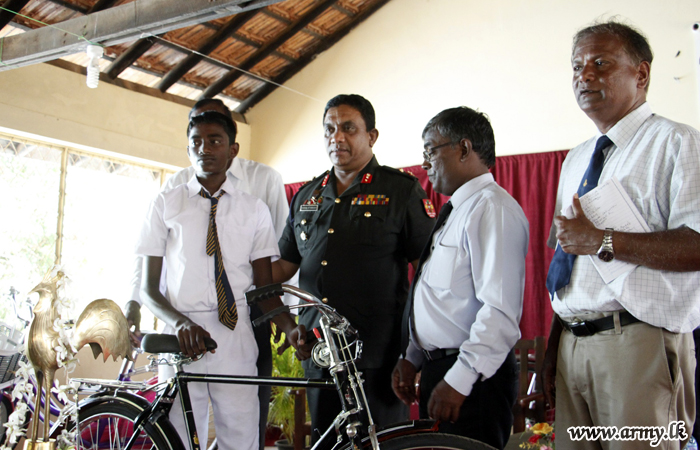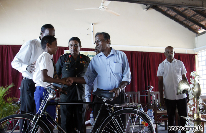 The Principal, Mr G Vimalan, appreciative of the initiative taken by Major General Dharshana Hettiarrachchi, Commander, Security Forces - Jaffna assisted the selection of most deserving students who undergo hardships during their journey to the school back and forth and recommended the receipt of those riding incentives free of charge.