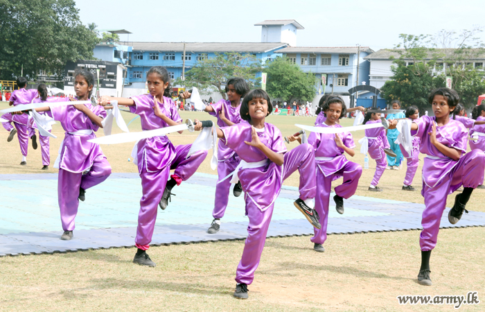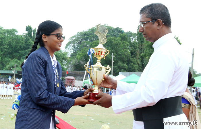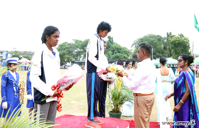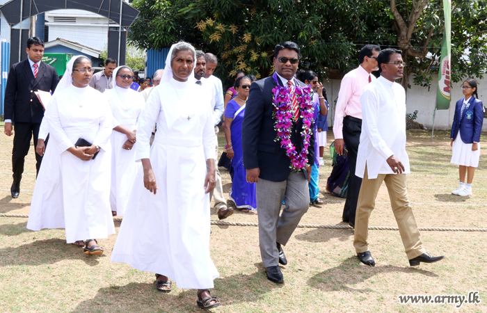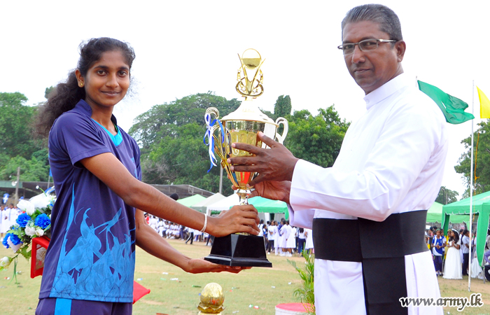 He was received by the Principal, Rev Mother Sandamali on arrival at the premises before he was conducted to the ground to witness the meet. He also joined distribution of trophies and awards to the winners in the meet.