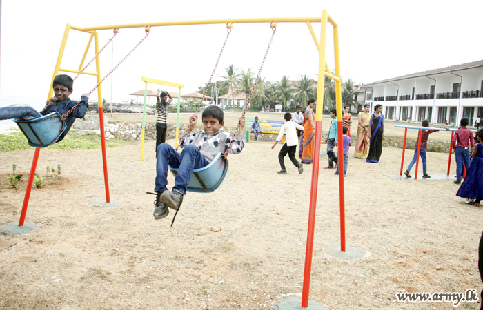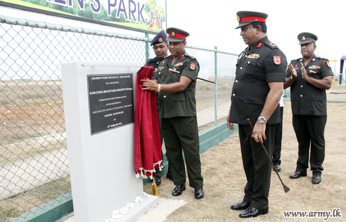 Major General Dharshana Hettiarrachchi, Commander, Security Forces - Jaffna as the Chief Guest opened the new park and vested it in the children by symbolically donating a stock of school accessories and stationery to the nearby children at Point Pedro Children’s Home around the same time.