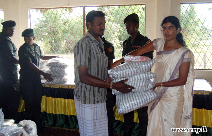 The distribution programmes, organized under the supervision of the Commander, 573 Brigade, 1 Sri Lanka Sinha Regiment (SLSR) and 15 SLSR troops took place on Monday (18).