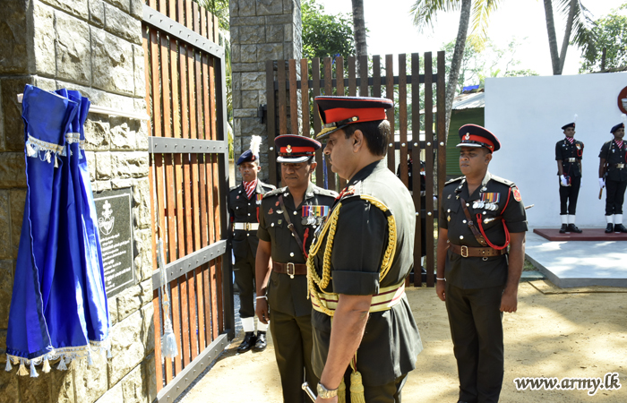 Major Anura Nanayakkara, Commanding Officer of the 8 SLLI welcomed the Colonel of the Regiment at the main entrance and invited him to unveil a plaque and open the main gateway to the battalion.