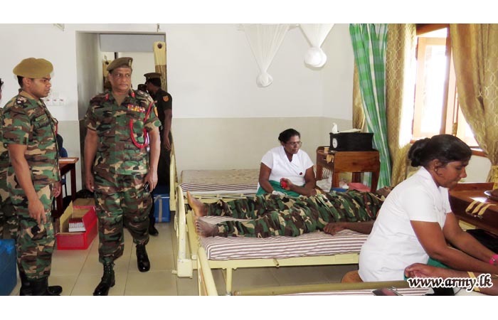 The provincial Blood Bank at the Kilinochchi District Hospital, affected by shortage of blood reached out to Major General Ralph Nugera, Commander, Security Forces - Kilinochchi (SF-KLN) in search of the requirement since less civilians are coming forward to give blood. Brigadier Mangala Wijesundara, General Officer Commanding, 66 Division coordinated the humanitarian project.