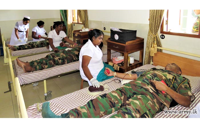 More than 70 Army personnel of Brigades and Battalions under command to the 66 Division Headquarters of the Security Force Headquarters - Kilinochchi (SFHQ-KLN), responding positively to a request of the Provincial Blood Bank at Kilinochchi District Hospital swiftly donated blood for the use of patients in Kilinochchi District during a recent arrangement at the Main Dressing Station at the 66 Division Headquarters.