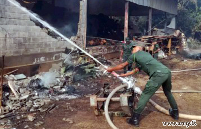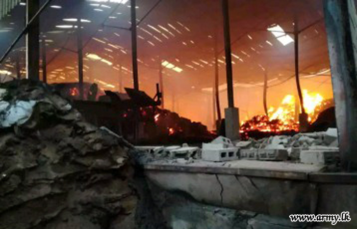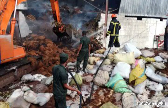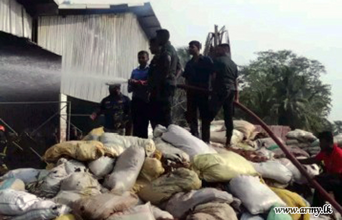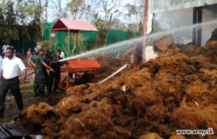To meet with the emergency need, 8 Gemunu Watch (GW) troops of the 143 Brigade under the 14 Division rushed to assist douse a raging fire in a coir factory in Kuliyapitiya area at the request of the Police and the Fire Brigade Wednesday (27) afternoon.