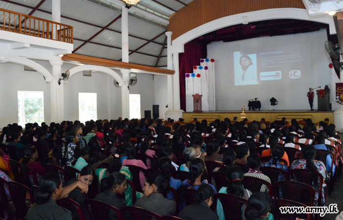 A full-day Workshop on ‘Beauty Culture’ for ladies in Kilinochchi, organized by the 57 Division under the guidance of its General Officer Commanding, Major General Vijitha Ravipriya, got underway at Nelum Piyasa auditorium on Monday (4) with the intention of educating the woman-folk regarding this growing trade of income.