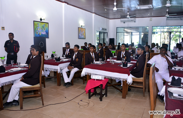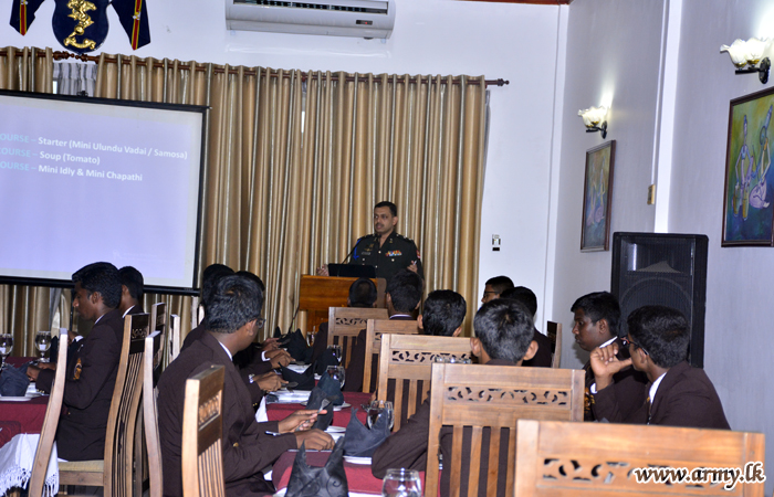 Commander of the Army, Lieutenant General Mahesh Senanayake showing his goodwill towards the students at Colombo Hindu College, for whose ‘Peace & Harmony’ Big Match Walk was extended all the support, took one more step further and invited 43 students of the College to receive a basic training on mannerism, etiquettes, dress codes, fine dinning and individual development under the Army patronage.
