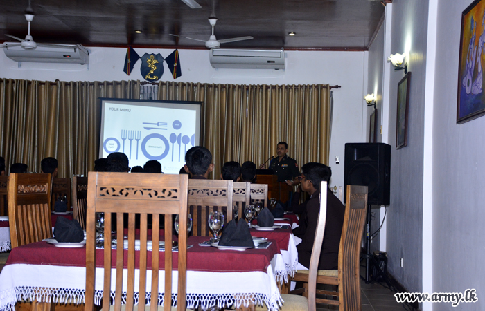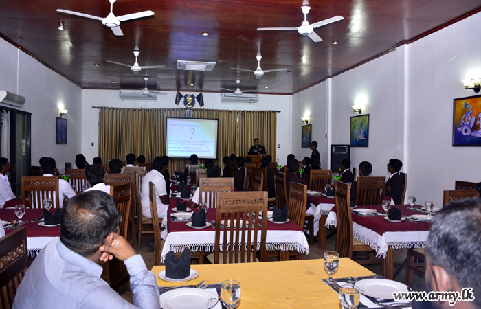 Lieutenant Colonel Anuradha Mendis of Sri Lanka Signal Corps (SLSC), supported by arrangements kept in place by the SLEME Regimental Centre and the Army Catering Battalion delivered lectures and conducted the basic sessions as advised by the Commander of the Army. |