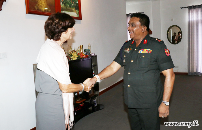 H.E. Joanne Doornewaard, Ambassador for the Kingdom of the Netherlands in Sri Lanka, paid a courtesy call at the Security Force Headquarters - Jaffna (SFHQ-J) on Friday (8) and had an official meeting with the Commander, Security Forces - Jaffna, Major General Darshana Hettiarrachchi.