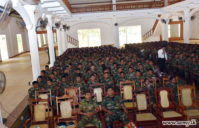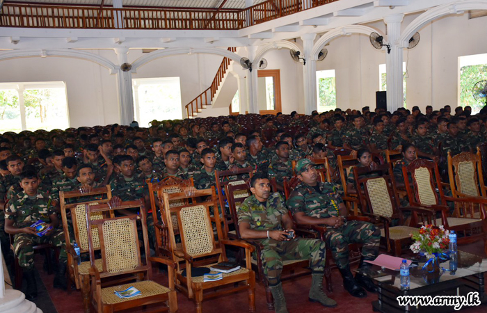 Commander, Security Forces - Kilinochchi, Major General Ralph Nugera has given his blessings to the project. Coordinating Officer in the Human Rights Commission in Vavuniya, Mr. M.R Priyadharshana conducted the programme. More than 14 Officers and 500 Other Ranks attended the lecture. |