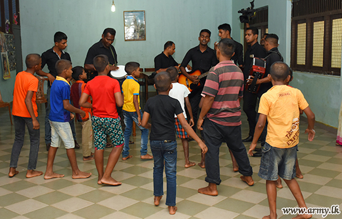 Meanwhile, VIR Regimental Headquarters conducted another charity event to coincide with their 29th anniversary on Friday (15) at the Kurunegala Maliyadeva Kids’ Home. 25 resident kids were offered delicious lunch stationery, uniform clothes. A Calypso music band played by the troops entertained them. |