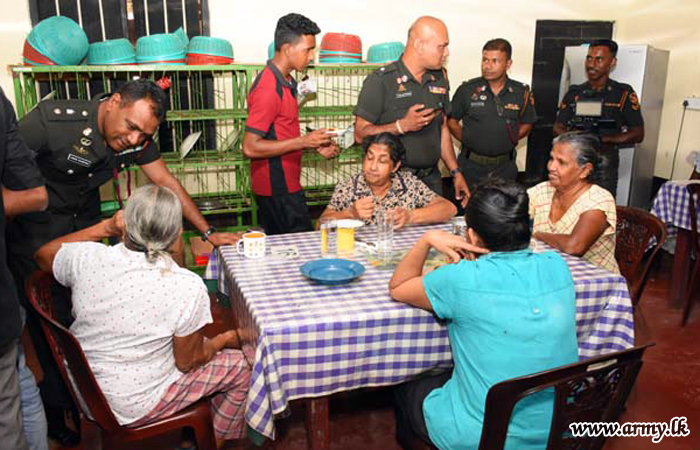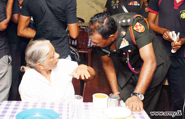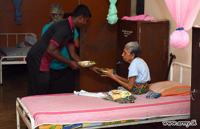 The programme organized on the guidelines given by the VIR Centre Commandant, Brigadier W.S Ariyasinghe saw 55 old parents, fathers, mothers and helpless inmates entertain to a hearty lunch before the rest of anniversary arrangements got underway elsewhere.