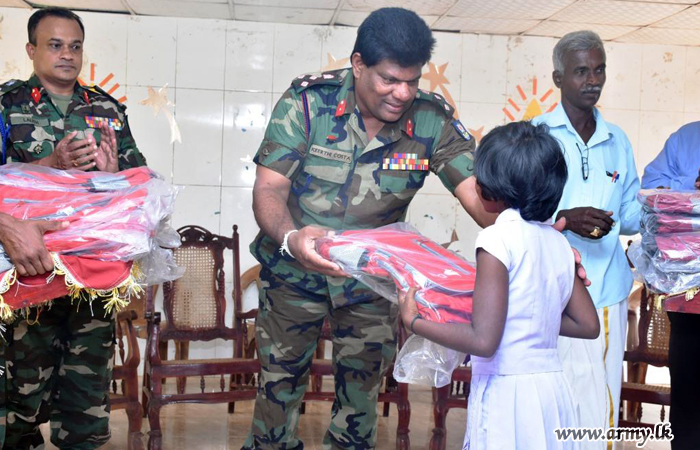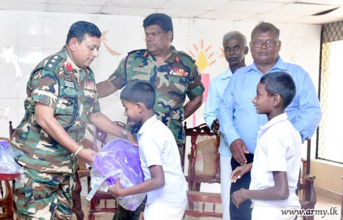 The remainder of flood-affected children in the general areas of Mullaittivu received school accessories, books and bags under the 3rd phase of the donation programme of the Dialog GSM, initiated by Major General Dushyantha Rajaguru, Commander, Security Forces - Mullaittivu (SF-MLT) during a programme, held on Friday (15) at Oddusudan Maha Vidyalaya.