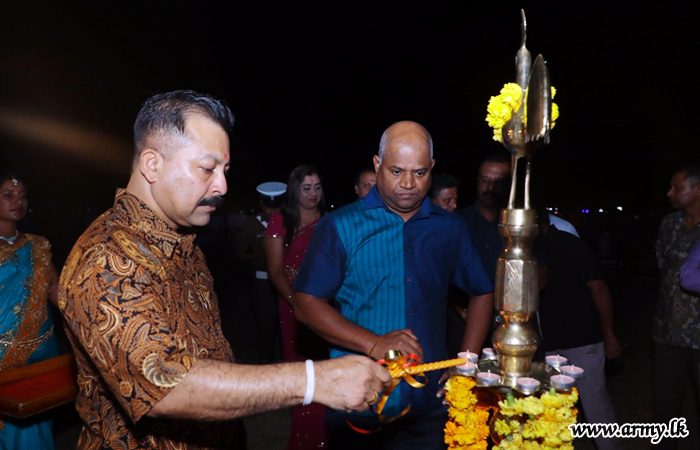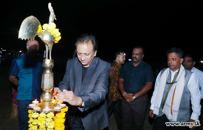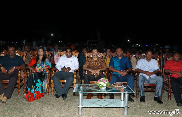 Troops of the 57 Division under the Security Force Headquarters - Kilinochchi (SFHQ-KLN) actively contributed to the conduct of the mega Indian musical entertainment at Kilinochchi Central College ground on Sunday (16) evening with the blessings of Major General Ralph Nugera, Commander, Security Forces - Kilinochchi.