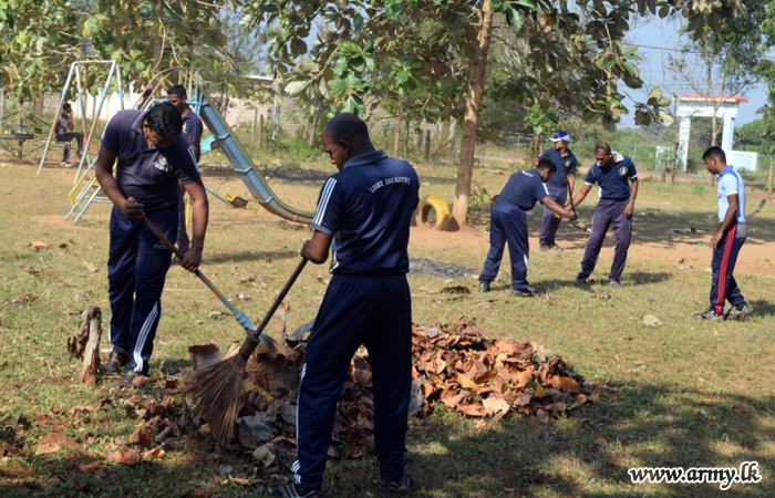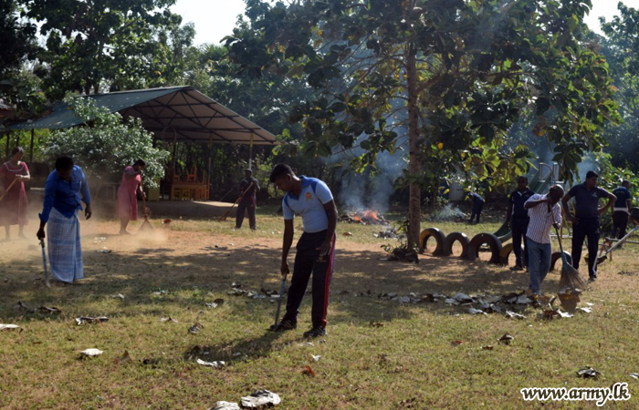 A group of Army personnel of the 10 Sri Lanka Light Infantry (SLLI) Regiment of the 653 Brigade under the 65 Division of the Security Force Headquarters – Kilinochchi (SFHQ-KLN) at the request of Palinagar Thamil Alagan pre-school volunteered to clean the premises for the benefit of kids learning there.