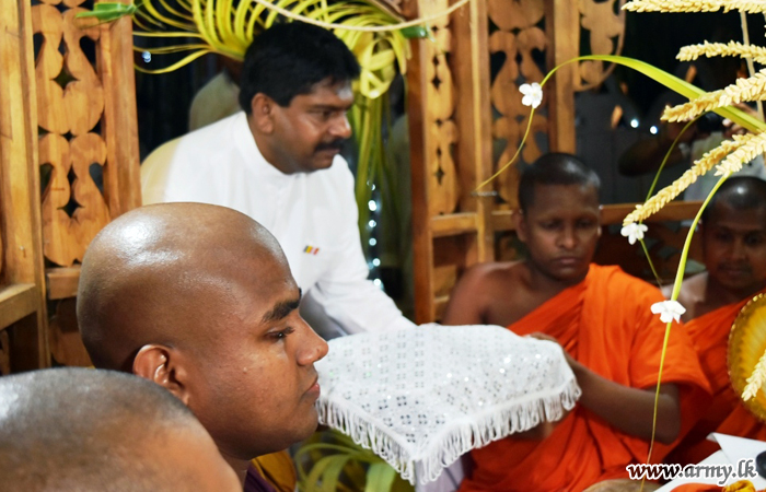 Members of the Maha Sangha, clergy in Ampara and a large gathering attended the ‘Pirith’ chanting and the pinnacle-unveiling ceremony at the 24 Division premises. |