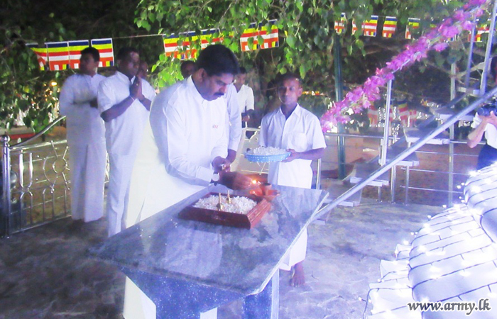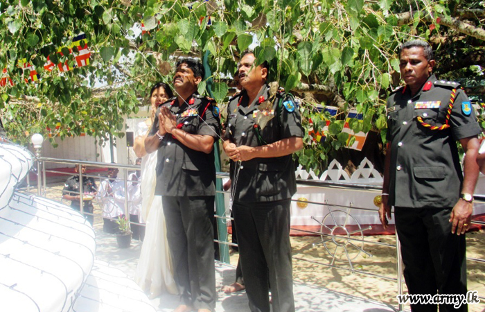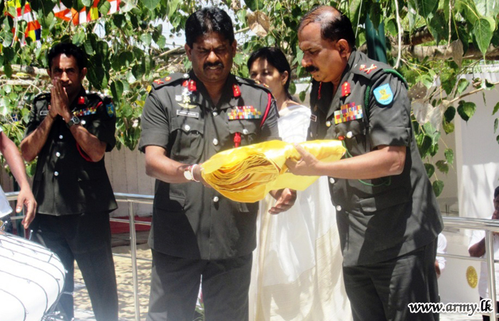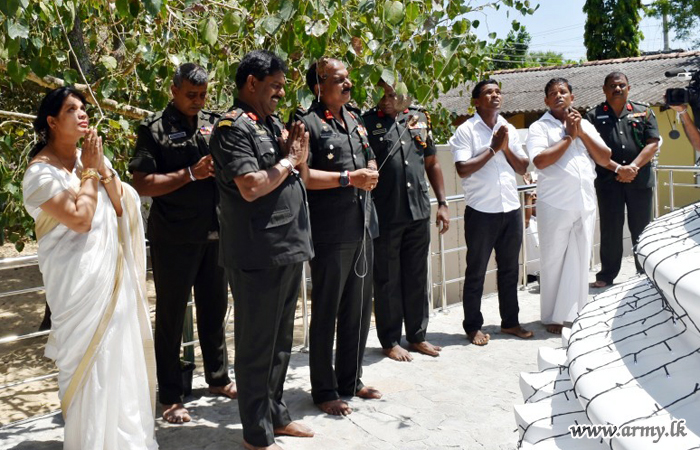 Major General Aruna Jayasekera, Commander, Security Forces – East at the request of Major General Mahinda Mudalige, General Officer Commanding, 24 Division was the Chief Guest for unveiling of the pinnacle atop the new pagoda (Dagoba), erected inside the 24 Division Headquarters premises in Ampara on Sunday (10).