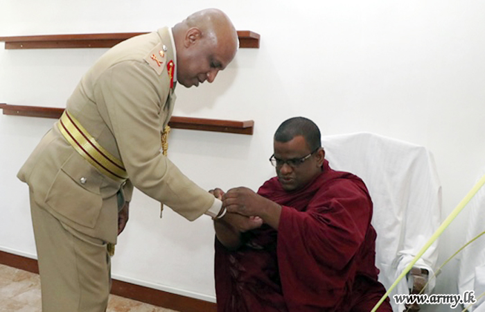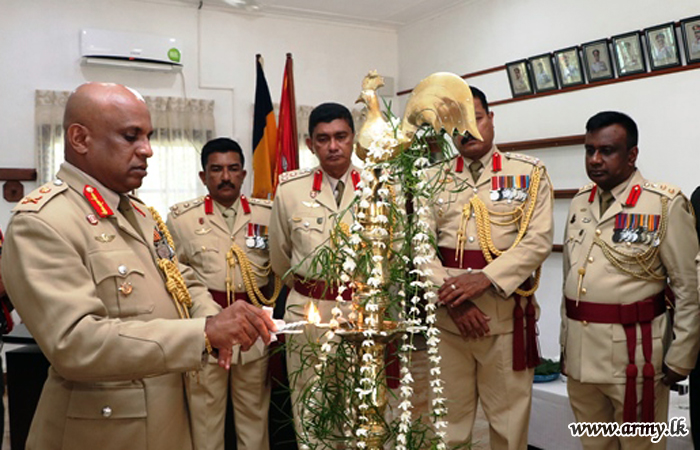 A brief religious ceremony, headed by members of the Maha Sangha chanted ‘Seth Pirith’ and invoked blessings after the new GOC lit the traditional oil lamp and warmed the new office upon entering the premises.