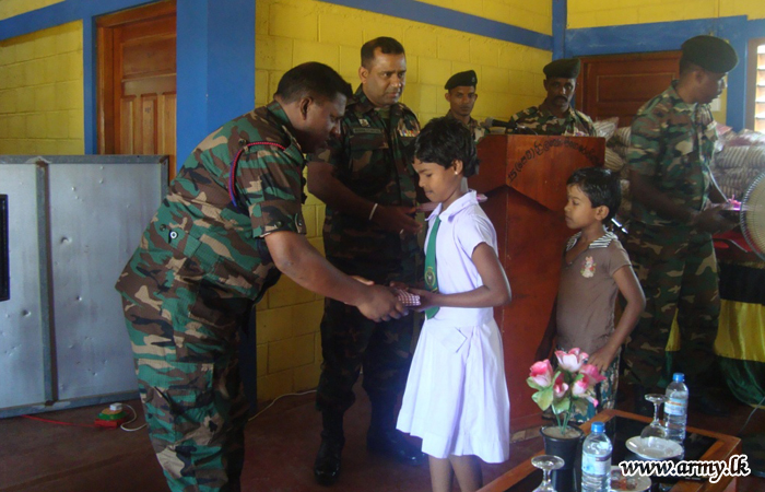 75 families of the fishing community, attached to the Iranamadu East Fisheries Association in Ramanadapuram, following sponsorship provided by the Commercial Bank in Kilinochchi received a stock of household items and school accessories gratis on Thursday (21).as a result of an initiative taken by the Security Force Headquarters-Kilinochchi and the 57 Division Headquarters.