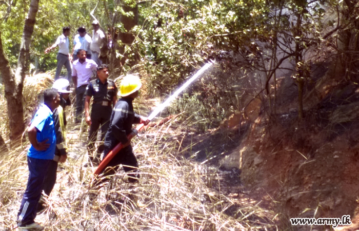 Within a few minutes, fast spreading wildfire was totally doused as a result of prompt action of the troops. |