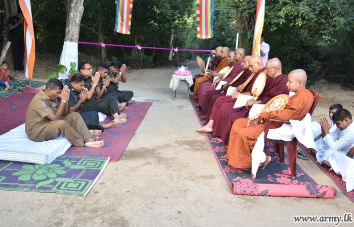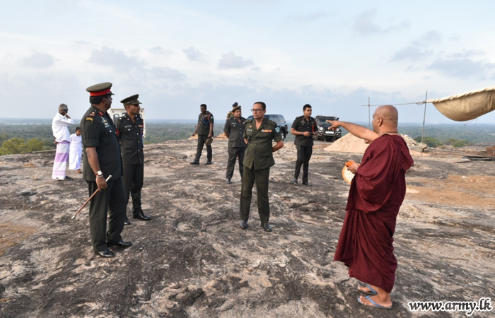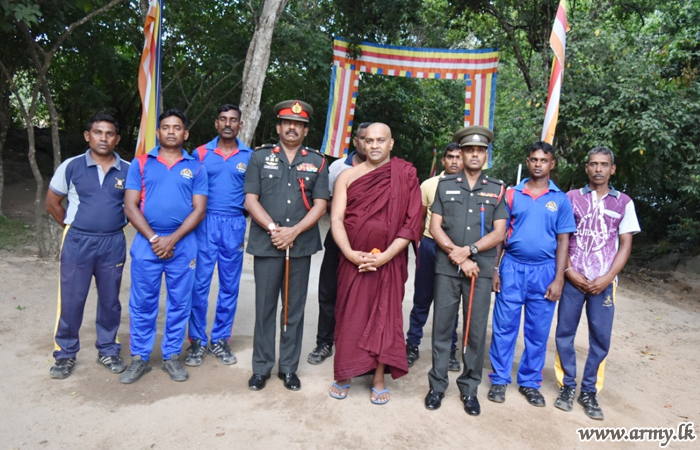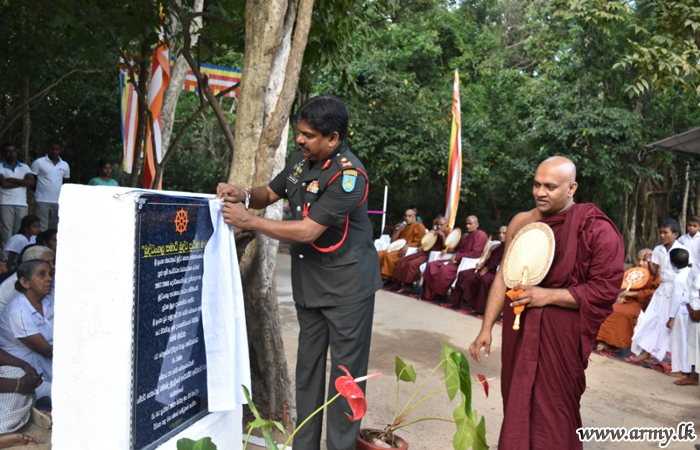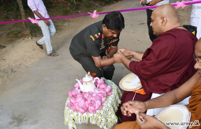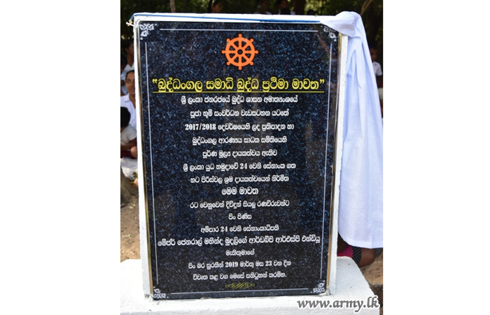 Major General Mahinda Mudalige, General Officer Commanding 24 Division at the invitation of the Chief Incumbent at Buddhangala Aranya Senasana, Ven. Deegawapiye Susima Thero on Saturday (23 ) as the Chief Guest ceremonially declared open the newly-constructed concrete road patch that leads from the temple entrance to its nearby rock after naming it as ‘Buddhangala Samadhi Buddha Prathima Mawatha’ in Ampara.