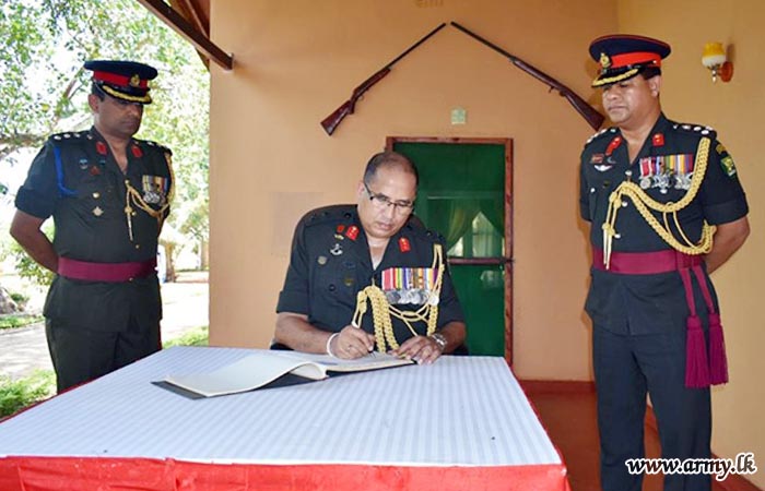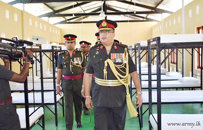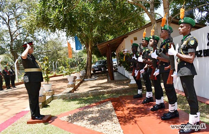 Commander, 542 Brigade, Colonel I.H.M.N.R.K Herath welcomed him and troops accorded a Guard Turnout at the entrance. Afterwards, the Chief Guest unveiled a plaque and warmed the newly-constructed accommodation area and the facility complex in the 542 Brigade Headquarters.