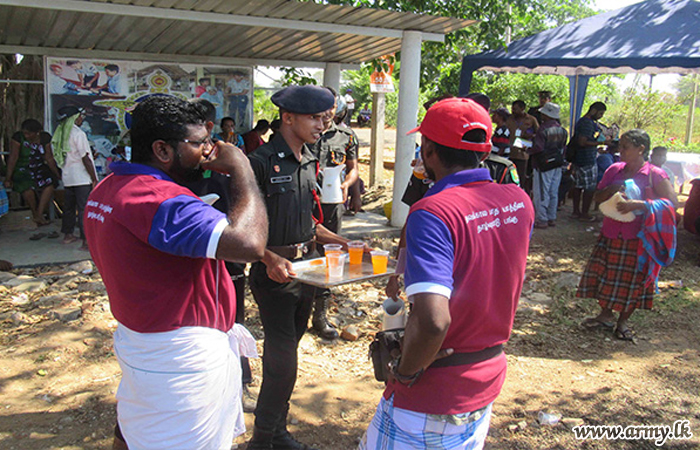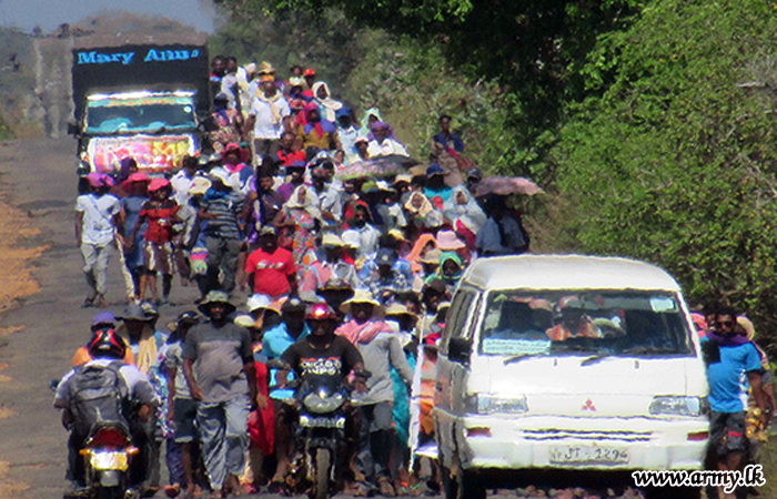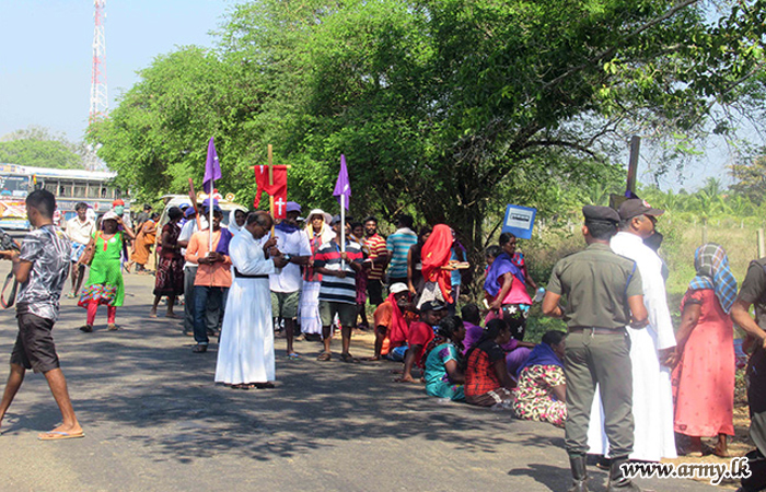 Catholic pilgrims on their annual pilgrimage from the Cathedral of Mannar to Komarasakulam in Vavuniya on foot, prior to the Easter week were entertained to refreshments and provided medical aids during arrangements put in place by 61 Division troops as they reached Poovarasankulam junction on Thursday (28) while proceeding towards Vavuniya.