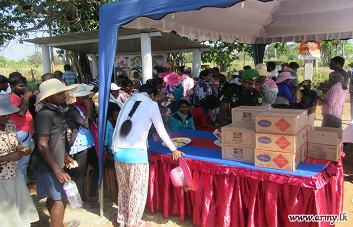 61 Division troops on the instructions of the General Officer Commanding, 61 Division Brigadier K.D.C.G.J Thilakaratne put up special huts, welcomed them, entertained them to sweetmeats and cool drinks and provided them with minor medical treatment as necessary after getting the services of an Army Medical Officer. Several Officers and Other Ranks joined this hospitality treatment irrespective of extreme dry weather patterns.