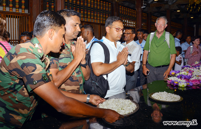 120 Indian Army soldiers and the equal number of Sri Lankan Army personnel, now engaged in the ‘Exercise Mitra Shakthi - VI’ took a day off and visited the sacred Temple of Tooth Relic, Victoria reservoir and the Pidurutalagala, the highest elevation point in Sri Lanka on Sunday (31).
