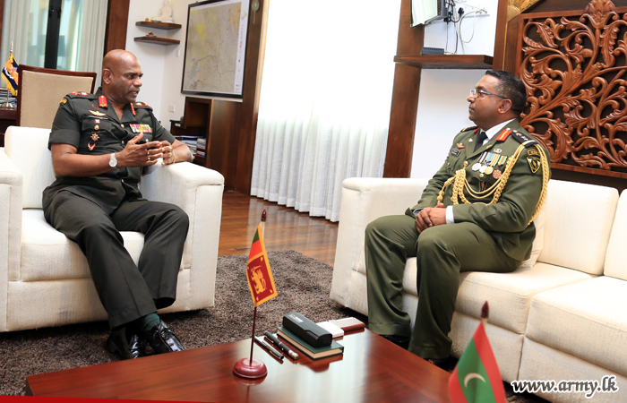 The outgoing Defence Attaché for Maldives, Colonel Ahmed Ghiyas on Friday (5) paid a courtesy call on the Commander of the Army Lieutenant General Mahesh Senanayake at the Army Headquarters.