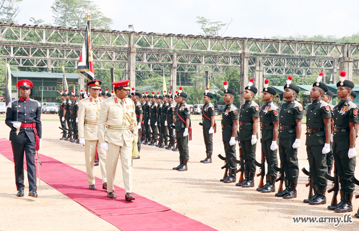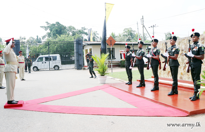 Major General Sathyapriya Liyanage at the entrance to the SLAVF Headquarters was greeted to a Guard Turnout and ushered afterwards to receive honours in the Guard of Honour accorded in connection with his assumption of new office.
