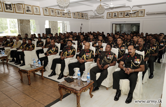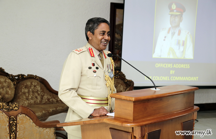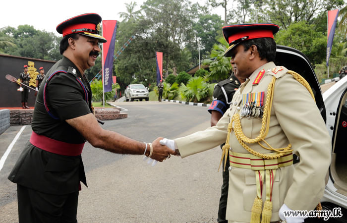 As a symbolic gesture of taking over the command, Major General Ruwan de Silva placed his signature in a formal document in the presence of Council members, Commanding Officers and staff at the RHQ after brief religious observances and lighting of the traditional oil lamp. The day's events also threw refreshments at the Warrant Officers' & Sergeants' Mess. An address to the Officers at the Officers' Mess brought the day's event to culmination.