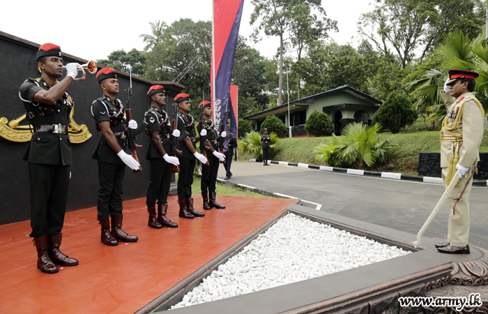 He revered the fallen war heroes of the Regiment by laying a floral wreath at the Regimental monument expressing his utmost concern towards them as the foremost event of the ceremony on arrival at the premises. Then he reviewed the Guard Turnout presented by the RHQ and accepted the Regimental salute accorded by members of the Regiment in a parade which included Regimental Colours.