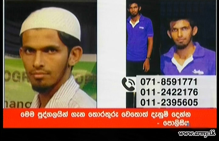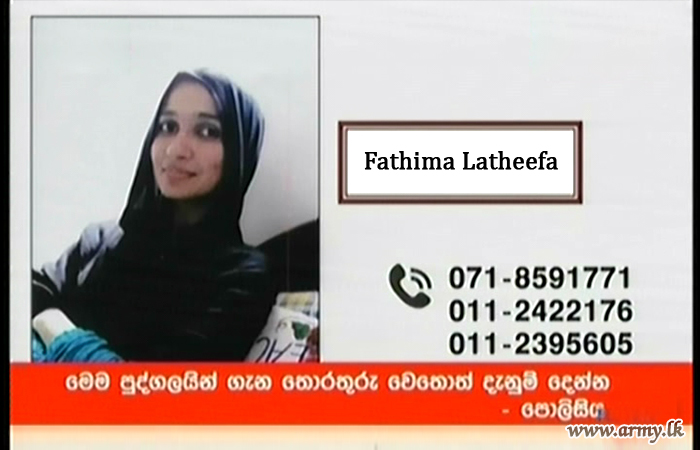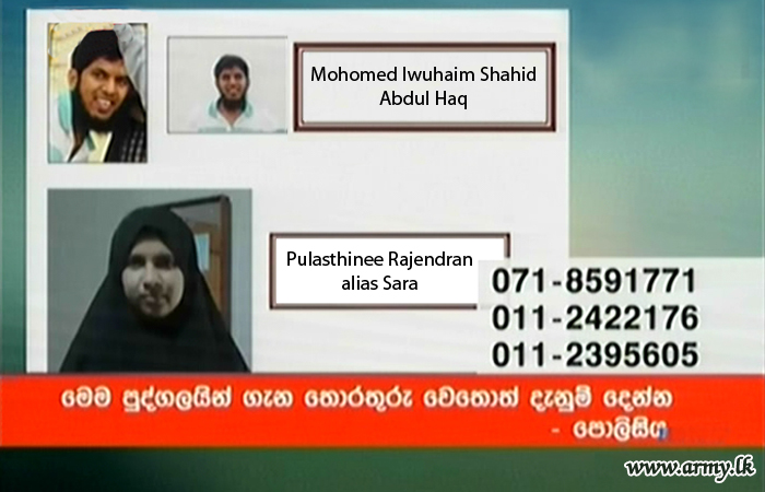*N. B : It is regretted to note the Police Headquarters which has issued these photos in an inadvertent slip has used the image of someone else by mistake identifying as Abdul Kadar Fathima Khadiya. The army.lk tenders unconditional apology to the person in the image in question and expresses its deep regret over the matter. |