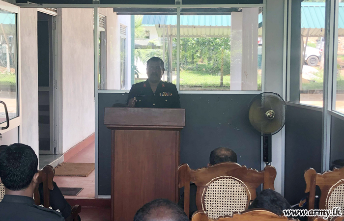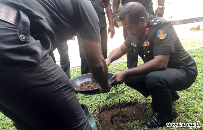 Brigadier D.R Dharmasiri adding memories to the occasion planted a mango sapling in the office compound and addressed the troops serving his branch.