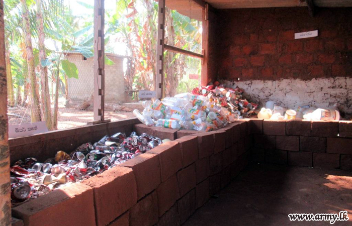 65 Division Headquarters in Thunukkai under the Security Force Headquarters - Kilinochchi (SFHQ-KLN), in what could be defined as an income-generating project of novel dimension has introduced a scheme to buy disposables, re-usable garbage and plastic items from the general public against on the spot cash.