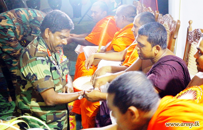 24 Division General Officer Commanding, Major General Mahinda Mudalige supported the project and took part in the programme. It also transferred merits to the departed in the Easter Sunday barbaric attack and wished speedy recovery to the injured. The programme also prayed everyone in the region to unite together at this critical phase of the country.