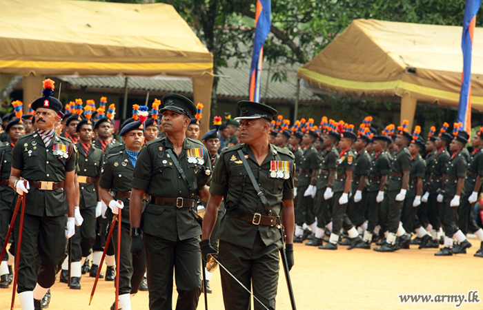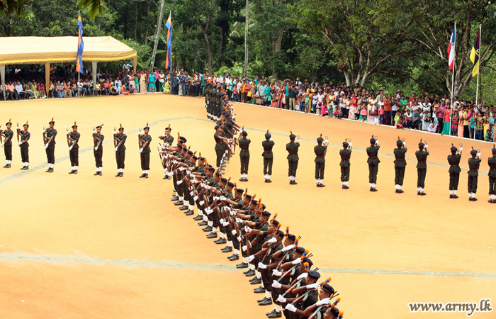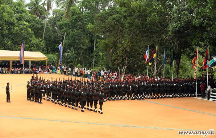 Those recruits of Sri Lanka Engineers, Sri Lanka Light Infantry, Corps of Engineer Services, Sri Lanka Army Medical Corps, Sri Lanka Army General Service Corps and Sri Lanka Army National Guard saluted the Chief Guest, Brigadier G.D Sooriyabandara, Commander 583 Brigade in the formal parade that took place in the parade ground.