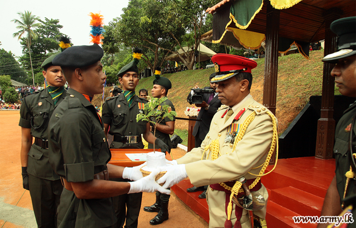 All those recruits received tamarind and wood-apple saplings on the occasion to coincide with the novel practice, introduced by the Commander of the Army, Lieutenant General Mahesh Senanayake.