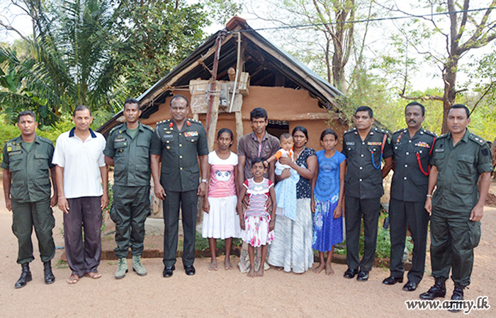On being informed of this poor family with 5 children is leading a hand to mouth life with no permanent source of income, 622 Brigade Commander under the guidance of Brigadier Dhammika Jayasinghe, General Officer Commanding, 62 Division brought the matter up with Major General Kumudu Perera, Commander, Security Forces - Wanni who has been the pioneer in launching this humanitarian project, through which he has already built 6 houses in the past 5 months.