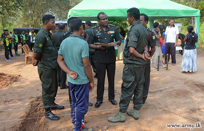 Civil Affairs Officers at the SFHQ-W, Headquarters of 62 Division and 622 Brigade, Commanding Officer of 9 Battalion Gajaba Regiment, Principal at Padavi Jayanthipura Central College Mr H.M.G.K Bandara, the beneficiary,Mr Ajith Premakumara along with his family members and a gathering of villagers were present at the ground-breaking ceremony. |