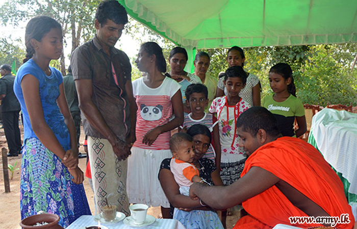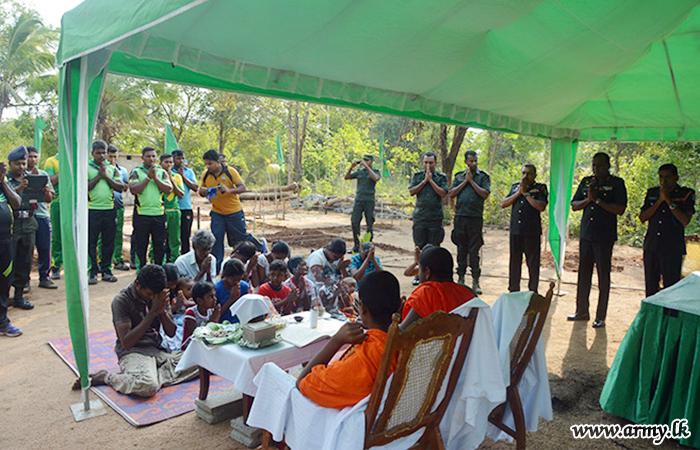 Following coordination done by the SFHQ-W, the Sri Lankan expatriate, Mr Leslie Saman Marasinghe generously came forward to build this house for the needy family with all amenities such as power, water, etc. The cornerstone-laying was laid by Colonel Anil Peiris, Colonel General Staff at the SFHQ-W representing the Wanni Commander.