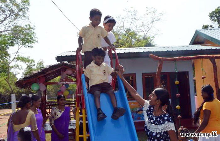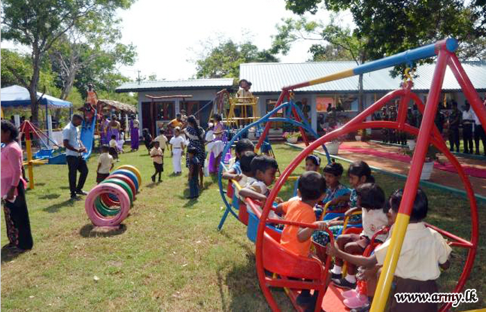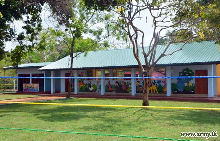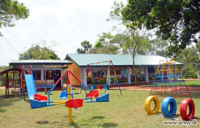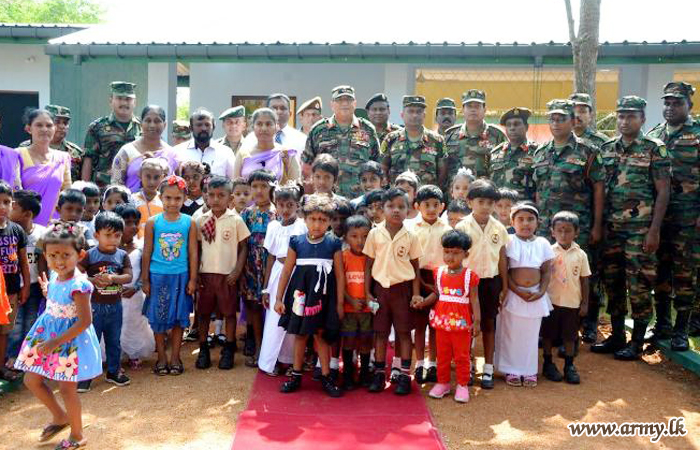 The 9th ‘Piyawara’ pre-school, the latest seat of learning for kids, established in the remote Alagalla area in Vavuniya as one more prominent projects of the Security Force Headquarters - Wanni (SFHQ-W), was vested in the kids during a ceremony, headed by Major General Kumudu Perera, Commander, Security Forces - Wanni on Monday (6).