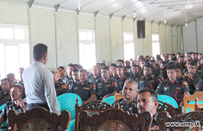 A series of lectures on ‘Prevention of Suicides’ were conducted during 7 - 9 May for troops serving the Security Force Headquarters-Kilinochchi (SFHQ-KLN), the Forward Maintenance Area - Kilinochchi and all Divisions under the SFHQ-KLN following an initiative taken by Major General Vijitha Ravipriya, Commander, Security Forces - Kilinochchi.
