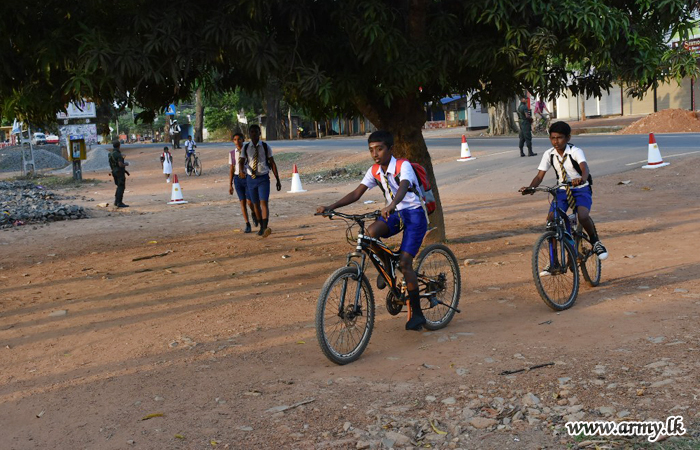 Meanwhile, Security Force Headquarters-Kilinochchi put in place all security measures for smooth conduct of schools in the district. Major General Vijitha Ravipriya, Commander, Security Forces-Kilinochchi personally supervised those security arrangements by visiting those locations to ensure uninterrupted function of the schools in Killinochchi District and held several rounds of meetings on the same subject.