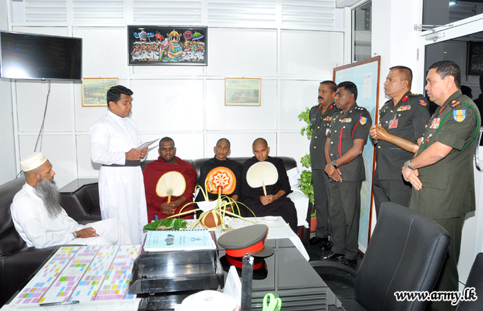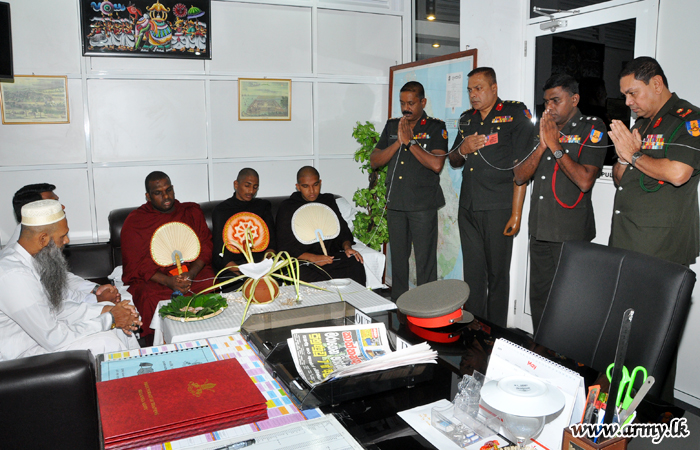 Upon arrival at his office, Major General T.S Bansajaya participated in the religious programme and received blessings from Buddhist monks, Catholic priests, and Moulavis of Islamic faiths before he placed his signature for a formal document to signify the acceptance of the office.