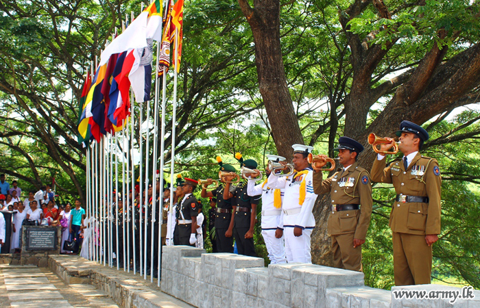 Hon. Maithri Gunaratne, Governor for Central Province as the Chief Guest, together with Major General Laksiri Waduge, Commander Security Forces (Central), Brigadier H. M. S. Herath, Project Officer 11 Division, Colonel W. B. W. M Aluwihare, Commander 111 Brigade, senior officers from the Navy, Police officers, Members of the Civil Security Department, relatives of War Heroes and a gathering of grateful civilians, school children took part in the Ranaviru commemoration. |