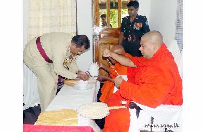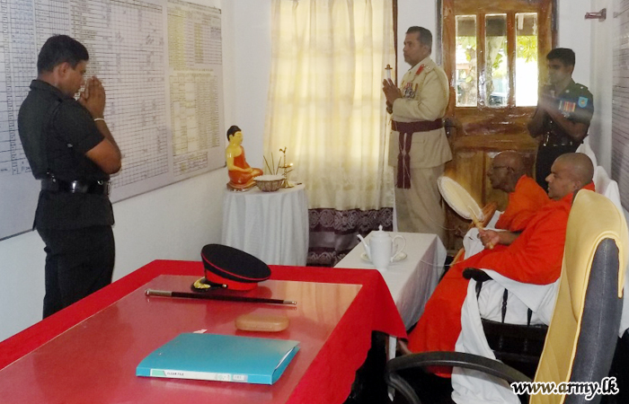 A subsequent Pirith chanting afterwards blessed the office of the new Brigade Commander as he placed his signature for an official document to signify the assumption of the new office.